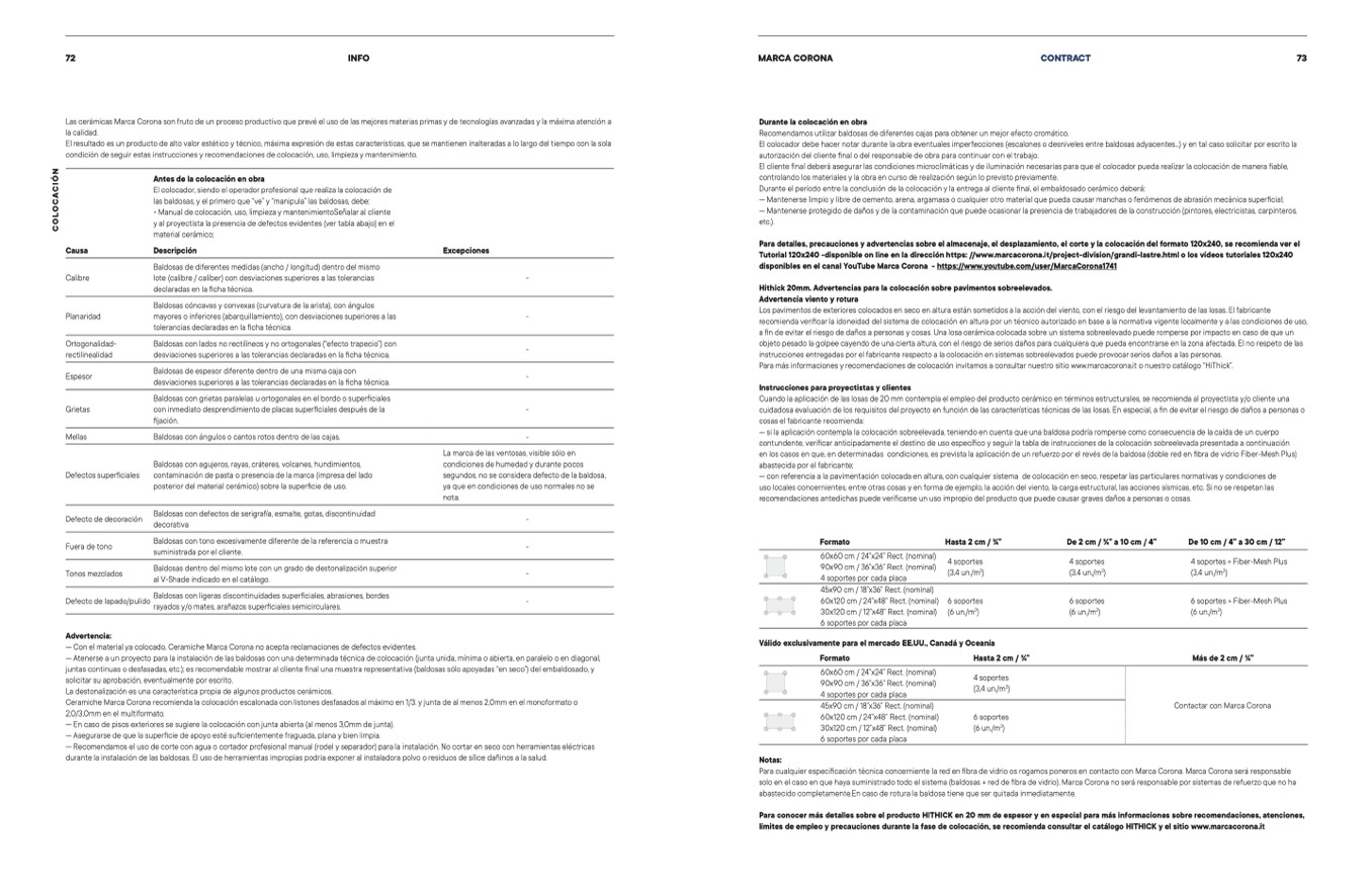 Para más informaciones y recomendaciones de colocación invitamos a consultar nuestro sitio www.marcacorona.it o nuestro catálogo “HiThick”.