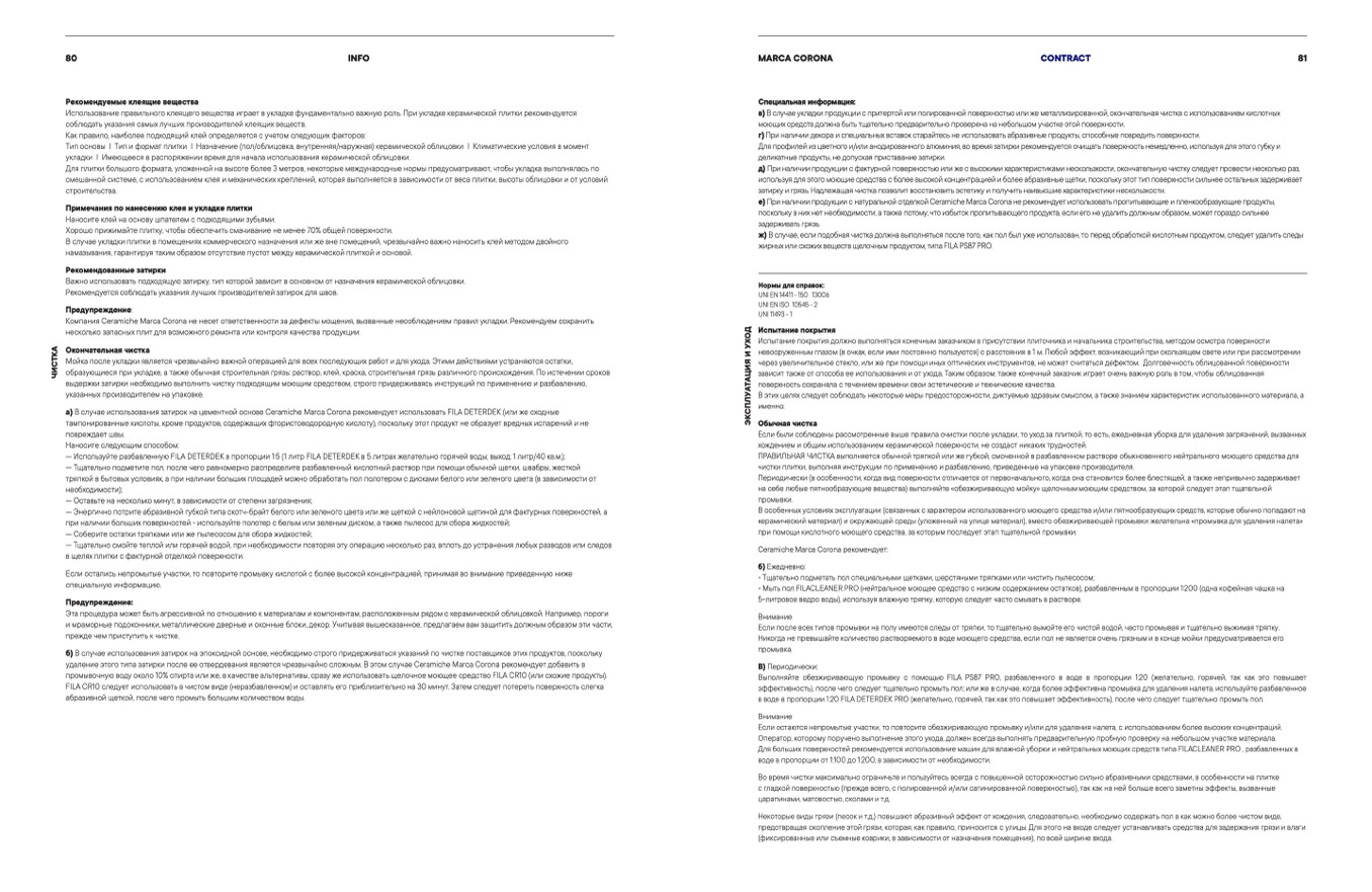 а) В случае использования затирок на цементной основе Ceramiche Marca Corona рекомендует использовать FILA DETERDEK (или же сходные