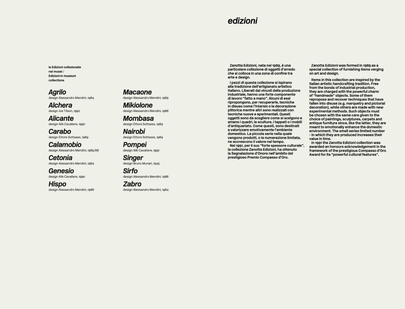 In 1991 the Zanotta Edizioni collection was
