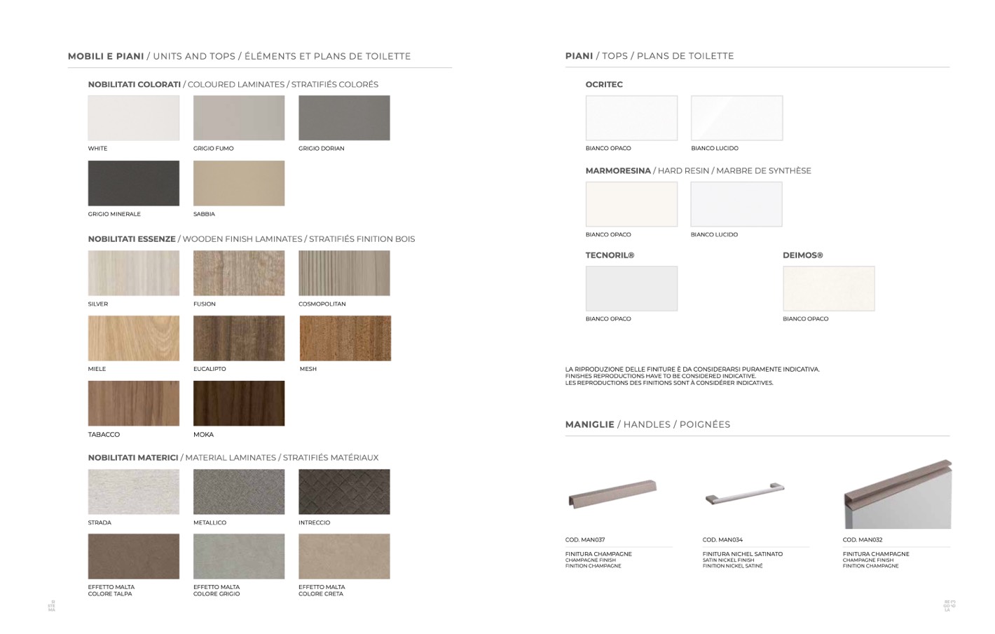 LA RIPRODUZIONE DELLE FINITURE È DA CONSIDERARSI PURAMENTE INDICATIVA.
