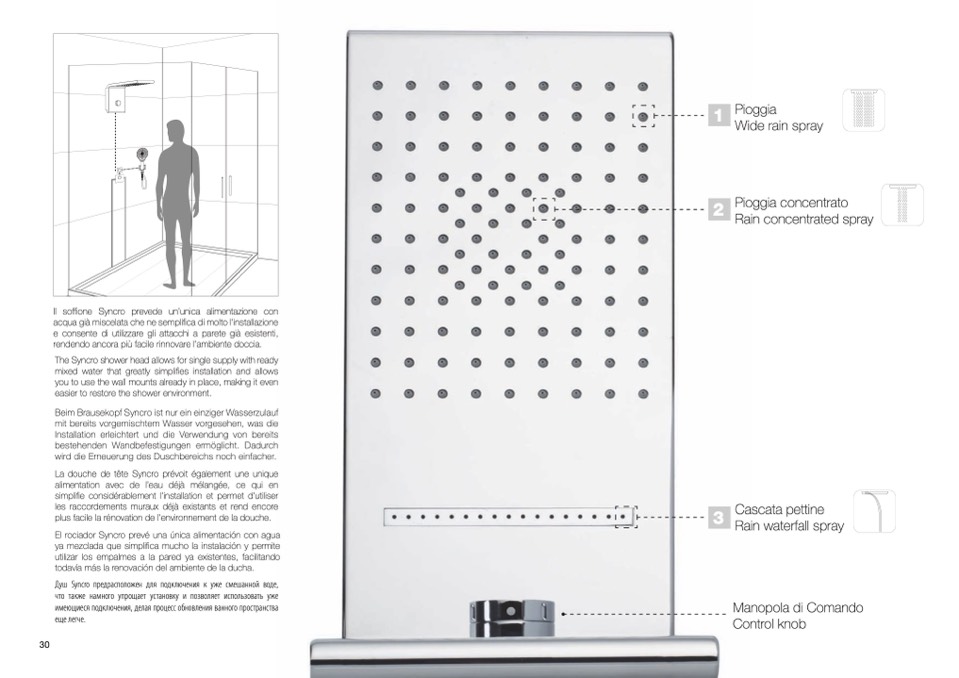 Il soffione Syncro prevede un’unica alimentazione con