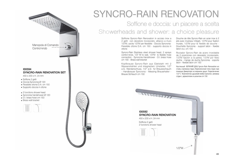Настенный ВЕРХНИЙ ДУШ Syncro-Rain Renovation из