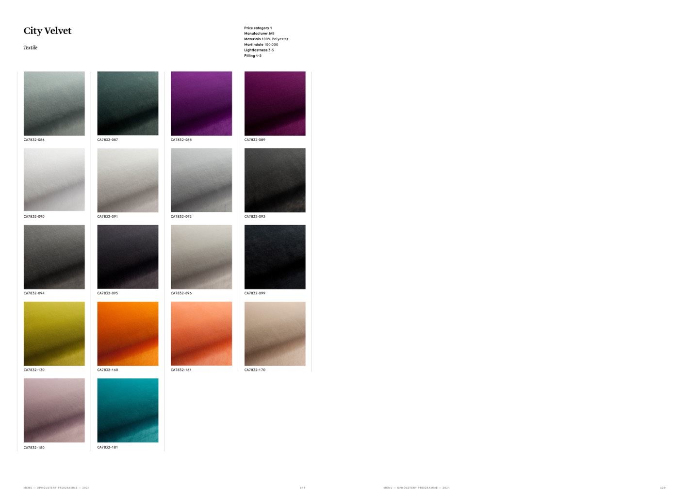 MENU — UPHOLSTERY PROGRAMME — 2021