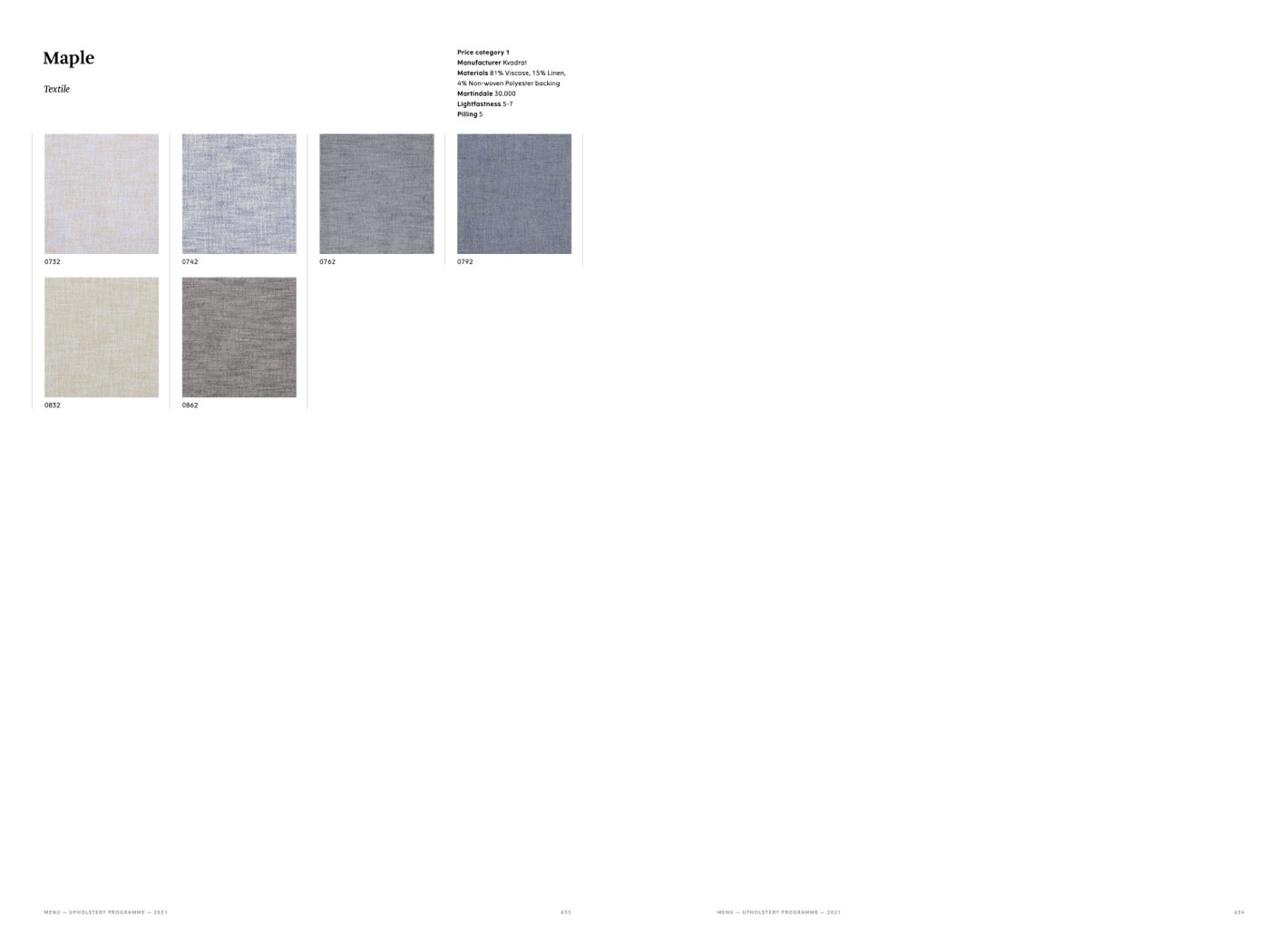 MENU — UPHOLSTERY PROGRAMME — 2021
