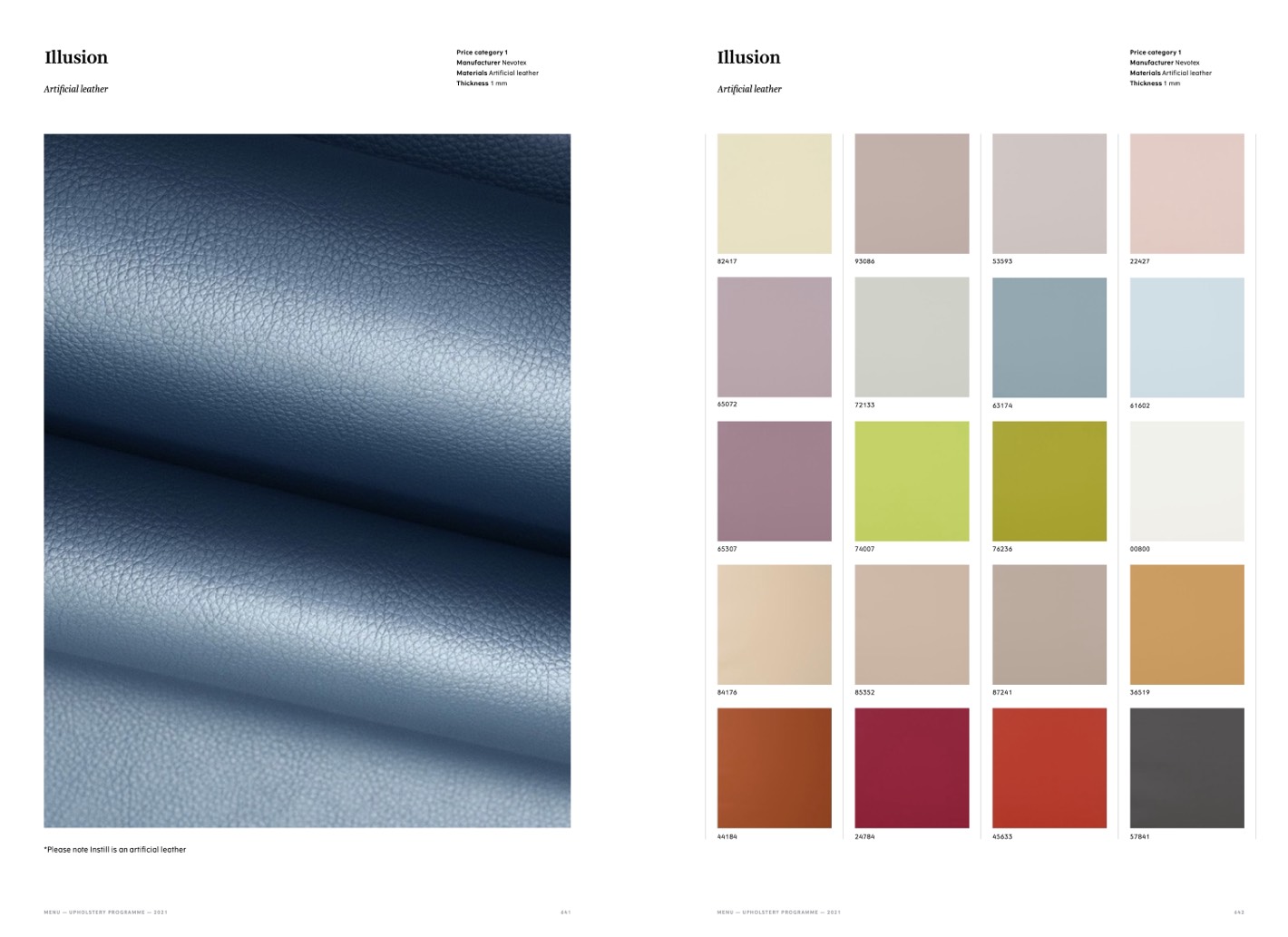 *Please note Instill is an artificial leather