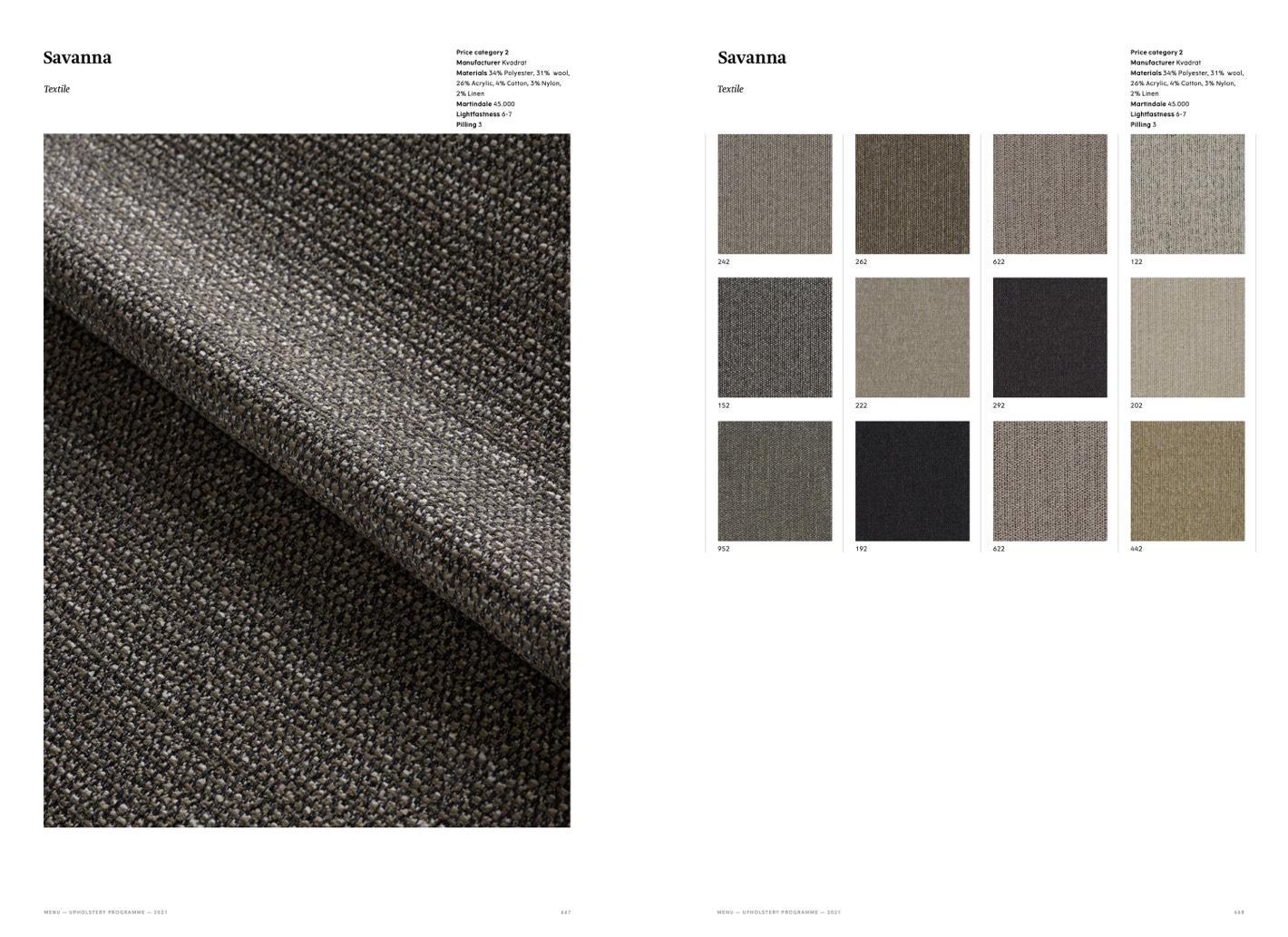 MENU — UPHOLSTERY PROGRAMME — 2021