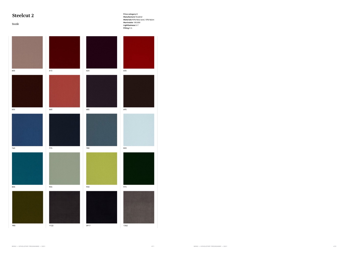 MENU — UPHOLSTERY PROGRAMME — 2021