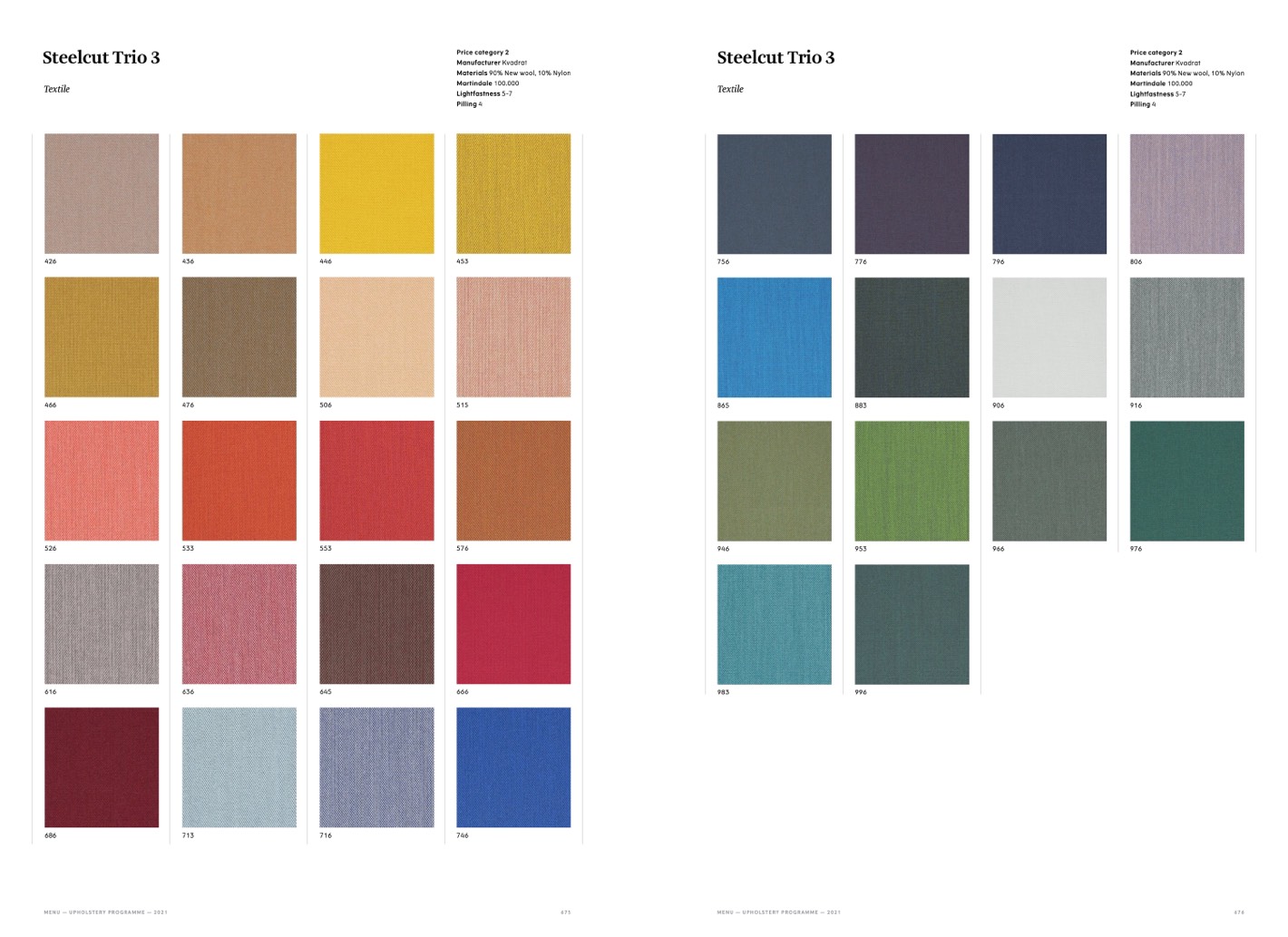 MENU — UPHOLSTERY PROGRAMME — 2021
