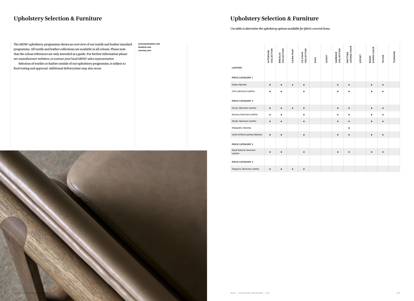 MENU — UPHOLSTERY PROGRAMME — 2021