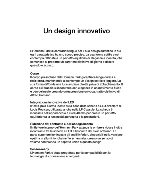 Louis Poulsen, utilizzata anche nella LP Capsule. La scheda è
