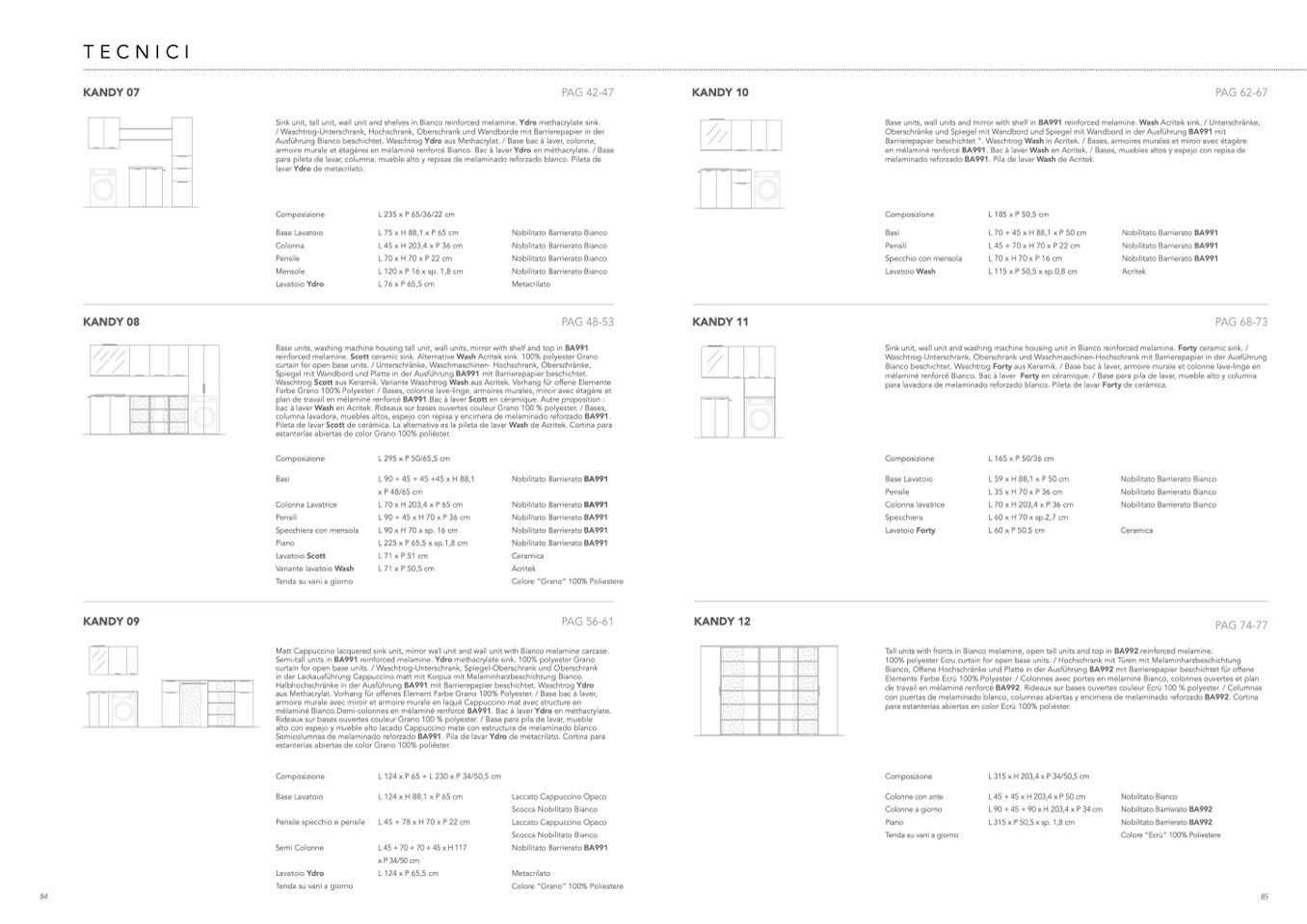 Base units, wall units and mirror with shelf in BA991 reinforced melamine. Wash Acritek sink. / Unterschränke,