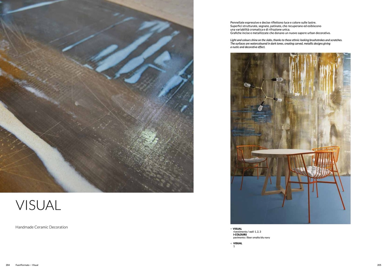 Light and colours shine on the slabs, thanks to these ethnic-looking brushstrokes and scratches.