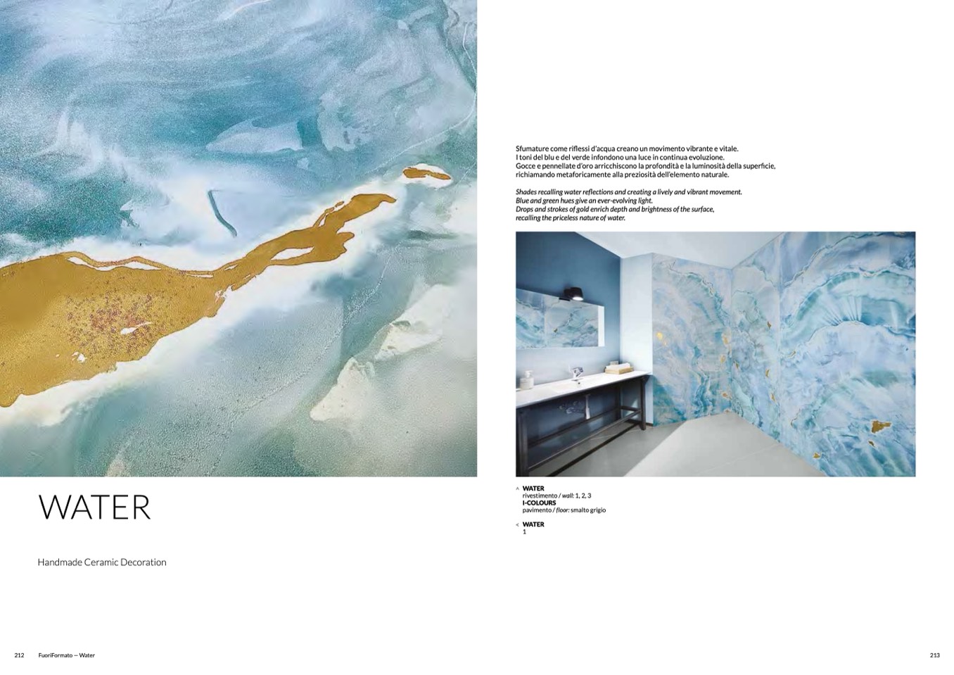 Shades recalling water reflections and creating a lively and vibrant movement.