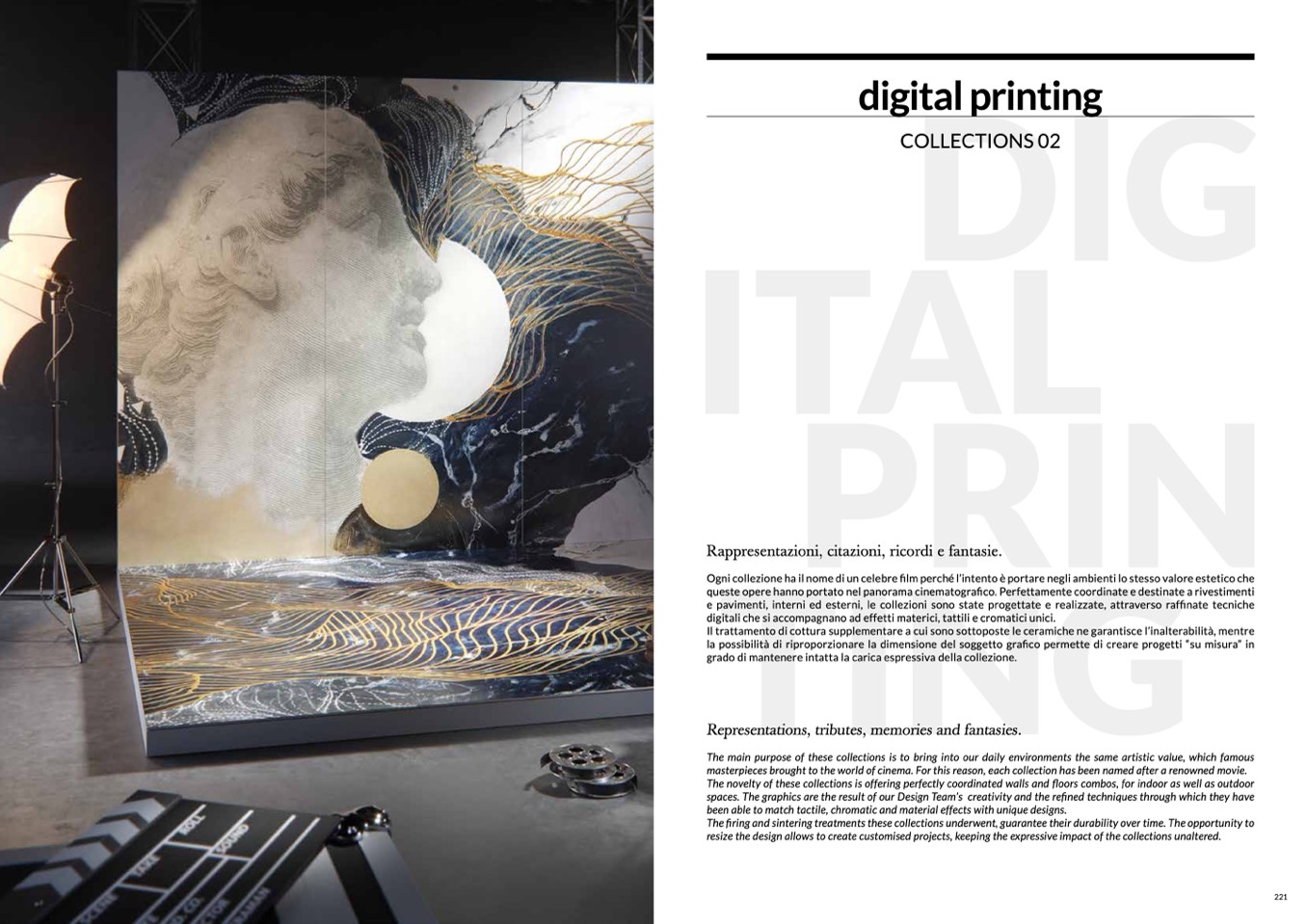 digitali che si accompagnano ad effetti materici, tattili e cromatici unici.