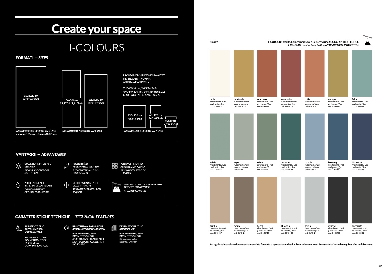 Ad ogni codice colore deve essere associato formato e spessore richiesti. / Each color code must be associated with the required size and thickness.