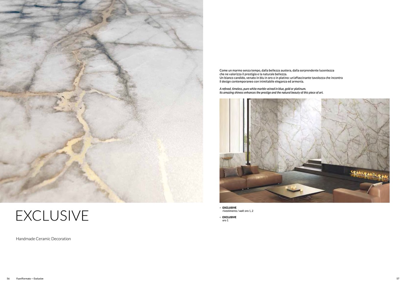 Un bianco candido, venato in blu in oro o in platino: un’affascinante tavolozza che incontra