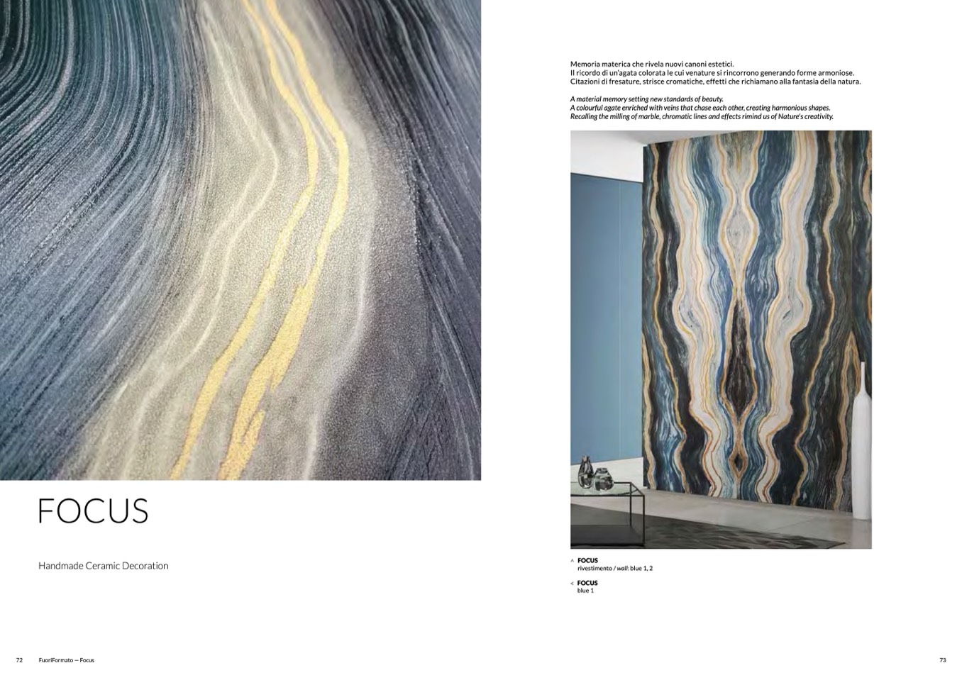 Recalling the milling of marble, chromatic lines and effects rimind us of Nature's creativity.