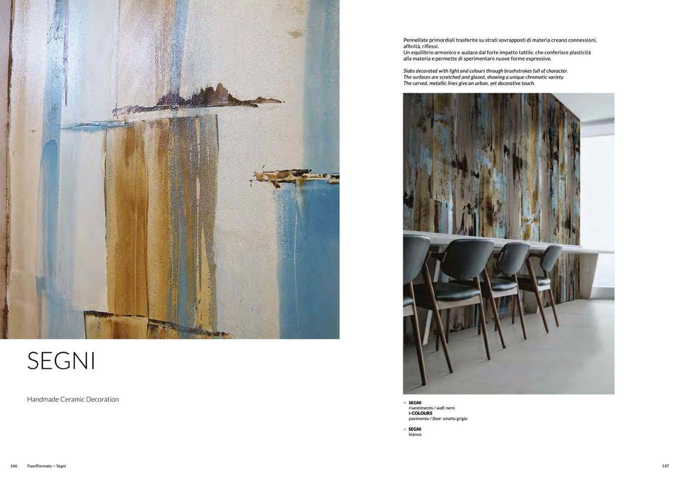 Slabs decorated with light and colours through brushstrokes full of character.