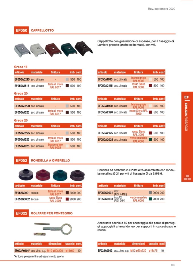 Cappellotto con guarnizione di espanso, per il fissaggio di