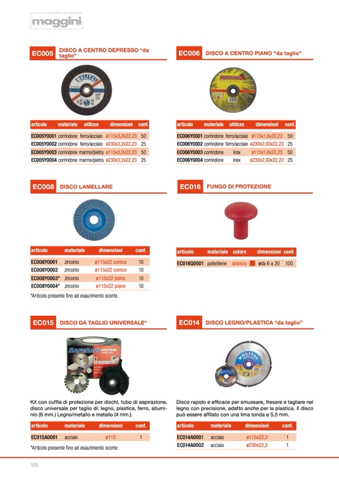 disco universale per taglio di: legno, plastica, ferro, allumi-
