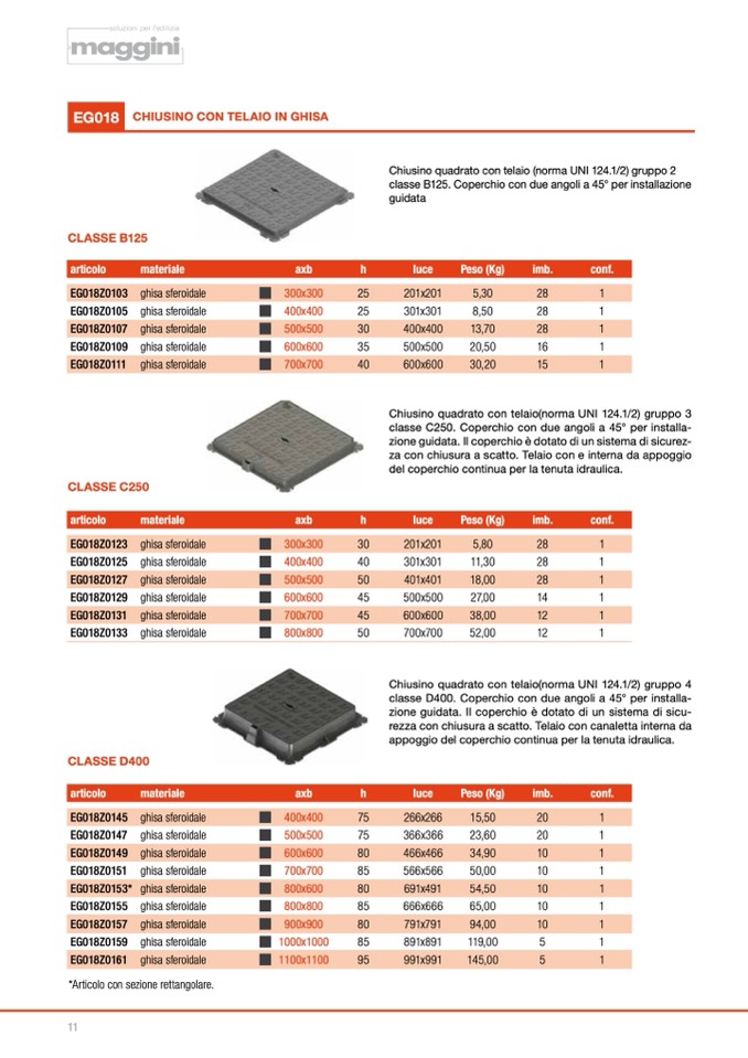Chiusino quadrato con telaio (norma UNI 124.1/2) gruppo 2