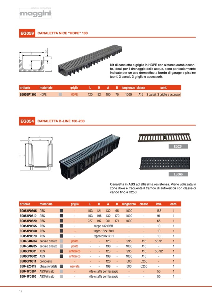 Kit di canalette e griglie in HDPE con sistema autobloccan-