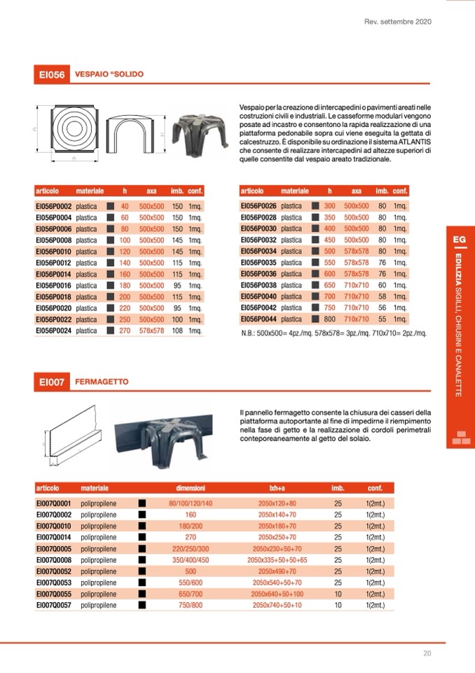 N.B.: 500x500= 4pz./mq. 578x578= 3pz./mq. 710x710= 2pz./mq.