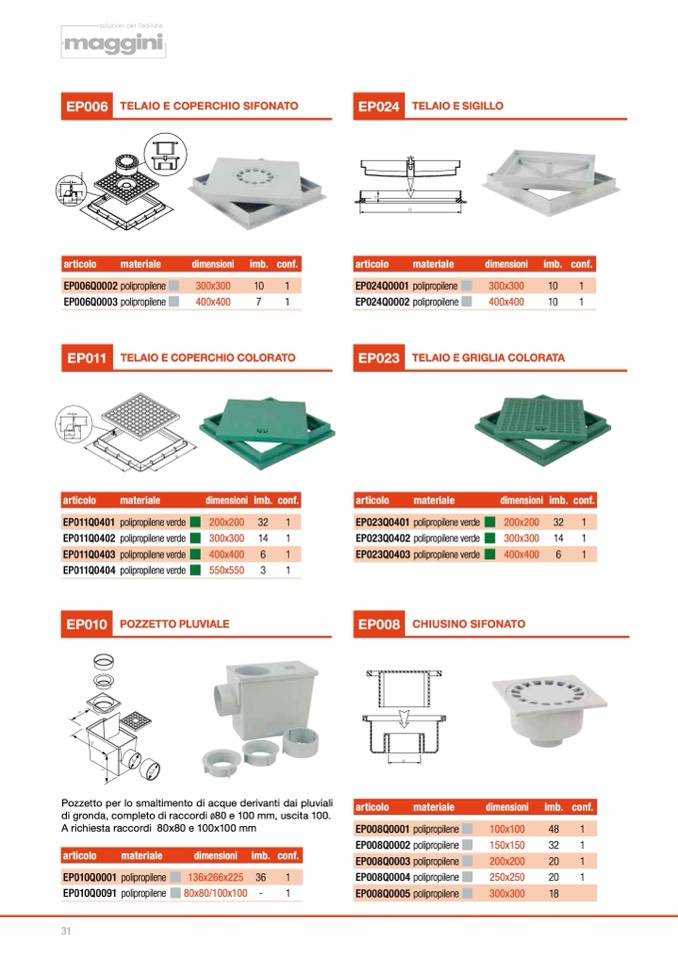 Pozzetto per lo smaltimento di acque derivanti dai pluviali