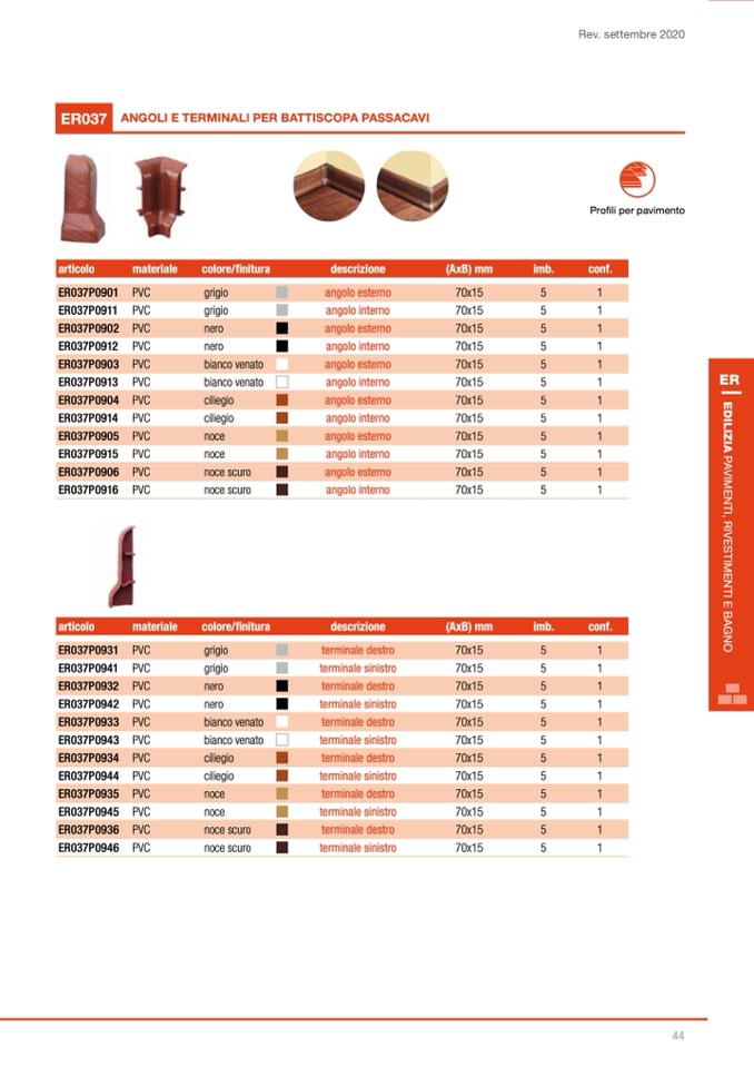 ANGOLI E TERMINALI PER BATTISCOPA PASSACAVI