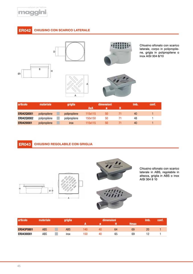 altezza, griglia in ABS o inox