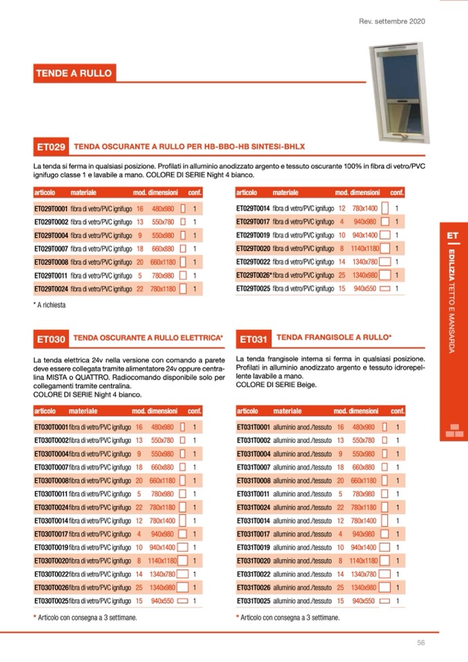 TENDA OSCURANTE A RULLO PER HB-BBO-HB SINTESI-BHLX