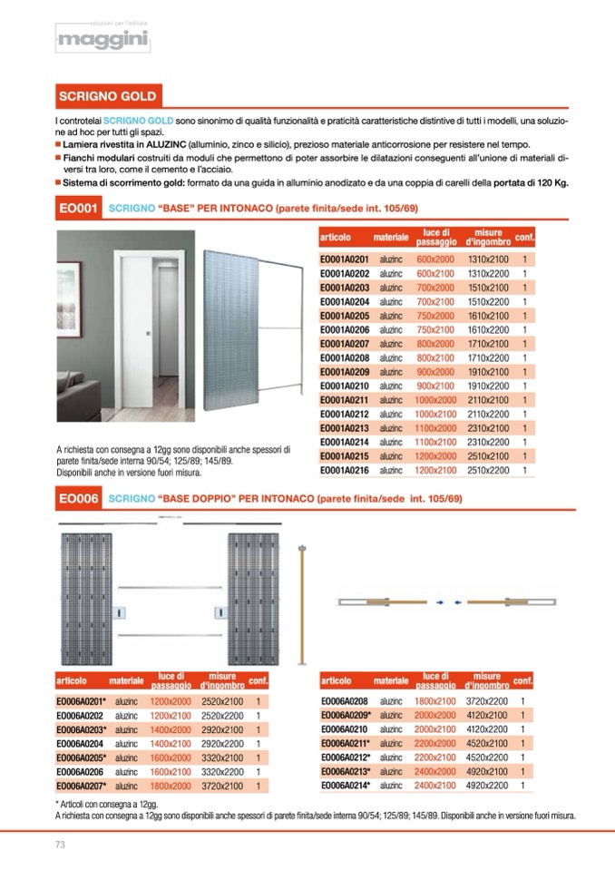 I controtelai SCRIGNO GOLD sono sinonimo di qualità funzionalità e praticità caratteristiche distintive di tutti i modelli, una soluzio-