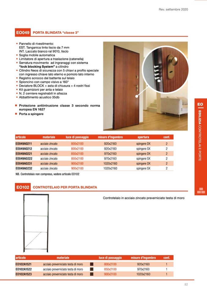 NB. Controtelaio non compreso, vedere articolo EO102
