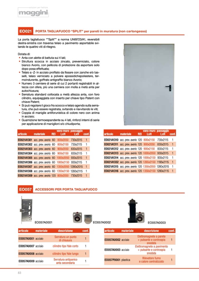 La porta tagliafuoco “”Split”” a norma UNI9723/A1, reversibili