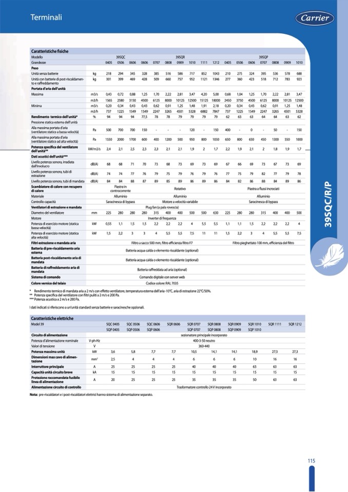 I dati indicati si riferiscono a un’unità standard senza batterie e saracinesche opzionali.