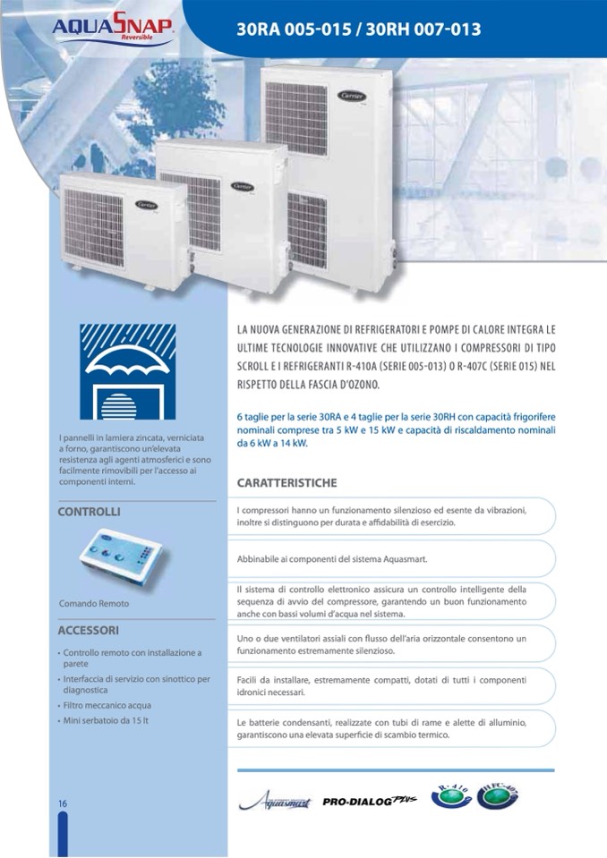 LA NUOVA GENERAZIONE DI REFRIGERATORI E POMPE DI CALORE INTEGRA LE