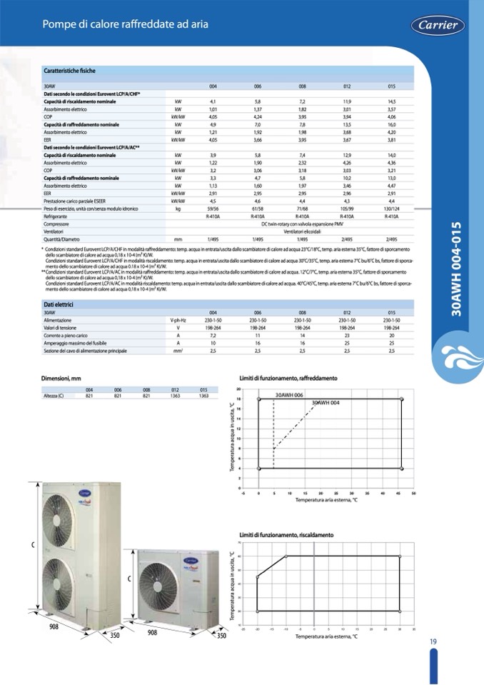 ffreddamento:temp.acquainentrata/uscitadalloscambiatoredicaloreadacqua23°C/18°C,temp.ariaesterna35°C,fattoredisporcamento