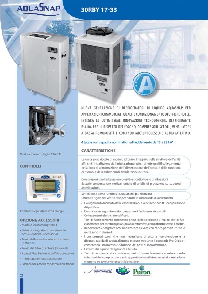 NUOVA GENERAZIONE DI REFRIGERATORI DI LIQUIDO AQUASNAP PER