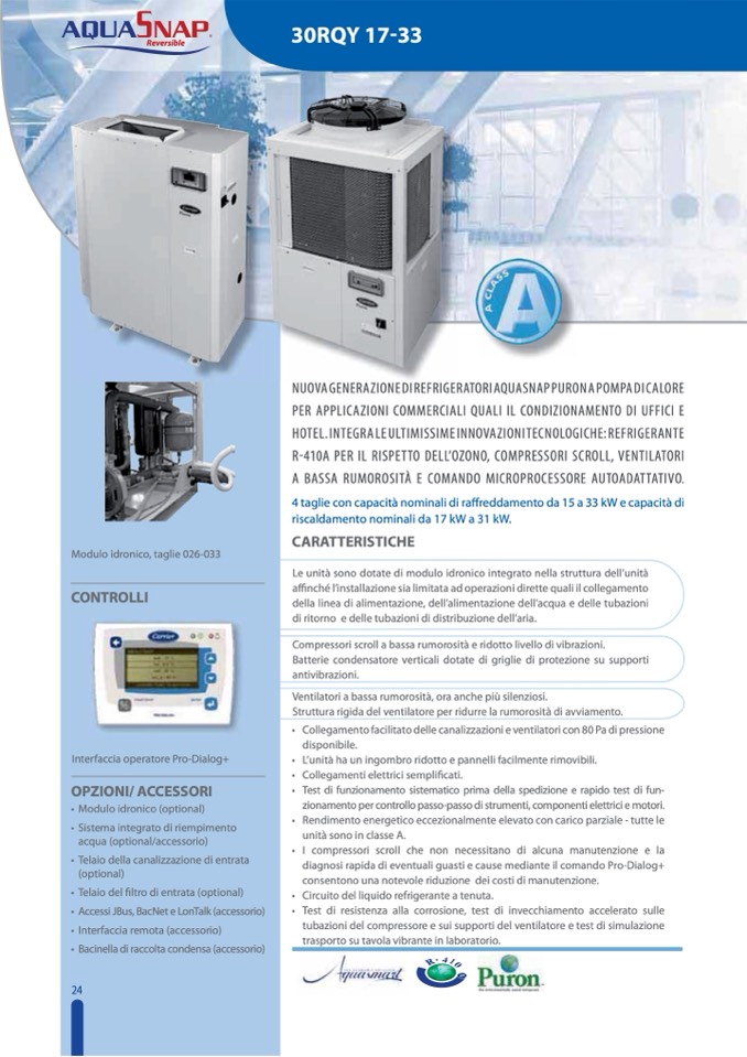 NUOVA GENERAZIONE DI REFRIGERATORI AQUASNAP PURON A POMPA DI CALORE