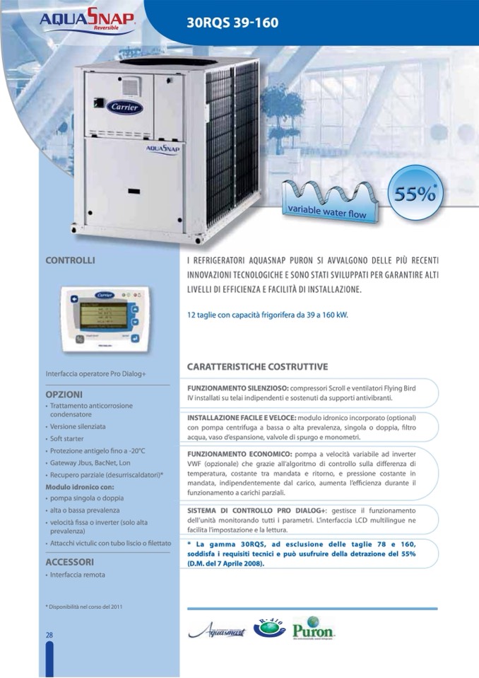 * La gamma 30RQS, ad esclusione delle taglie 78 e 160,