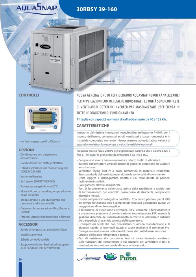 rispetto dell’ozono, compressori scroll, ventilatori a bassa rumorosità e in