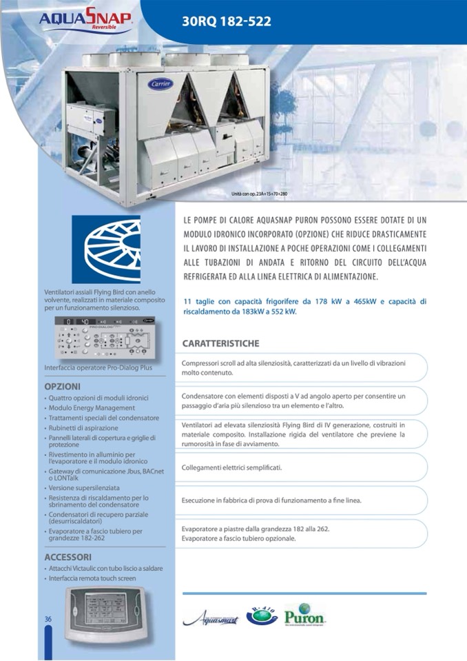 LE POMPE DI CALORE AQUASNAP PURON POSSONO ESSERE DOTATE DI UN