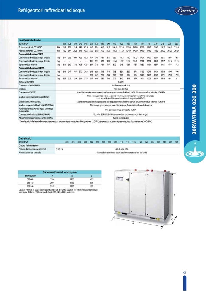 Peso unità in funzione 30RWA