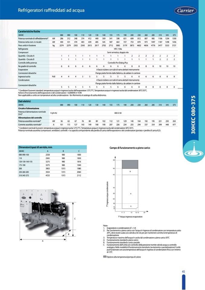 * Condizioni Eurovent standard: temperatura acqua in ingresso/uscita dall’evaporatore 12°C/7°C. Temperatura acqua in ingresso/uscita dal condensatore 30°C/35°C.