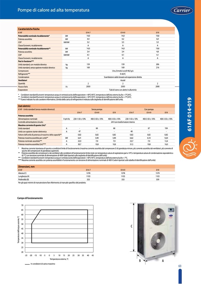 *** CondizionistandardEurovent:temperaturaacquainentrata/uscitadell’evaporatore=40°C/45°C,temperaturadell’ariaesternabu/bs=7°C.