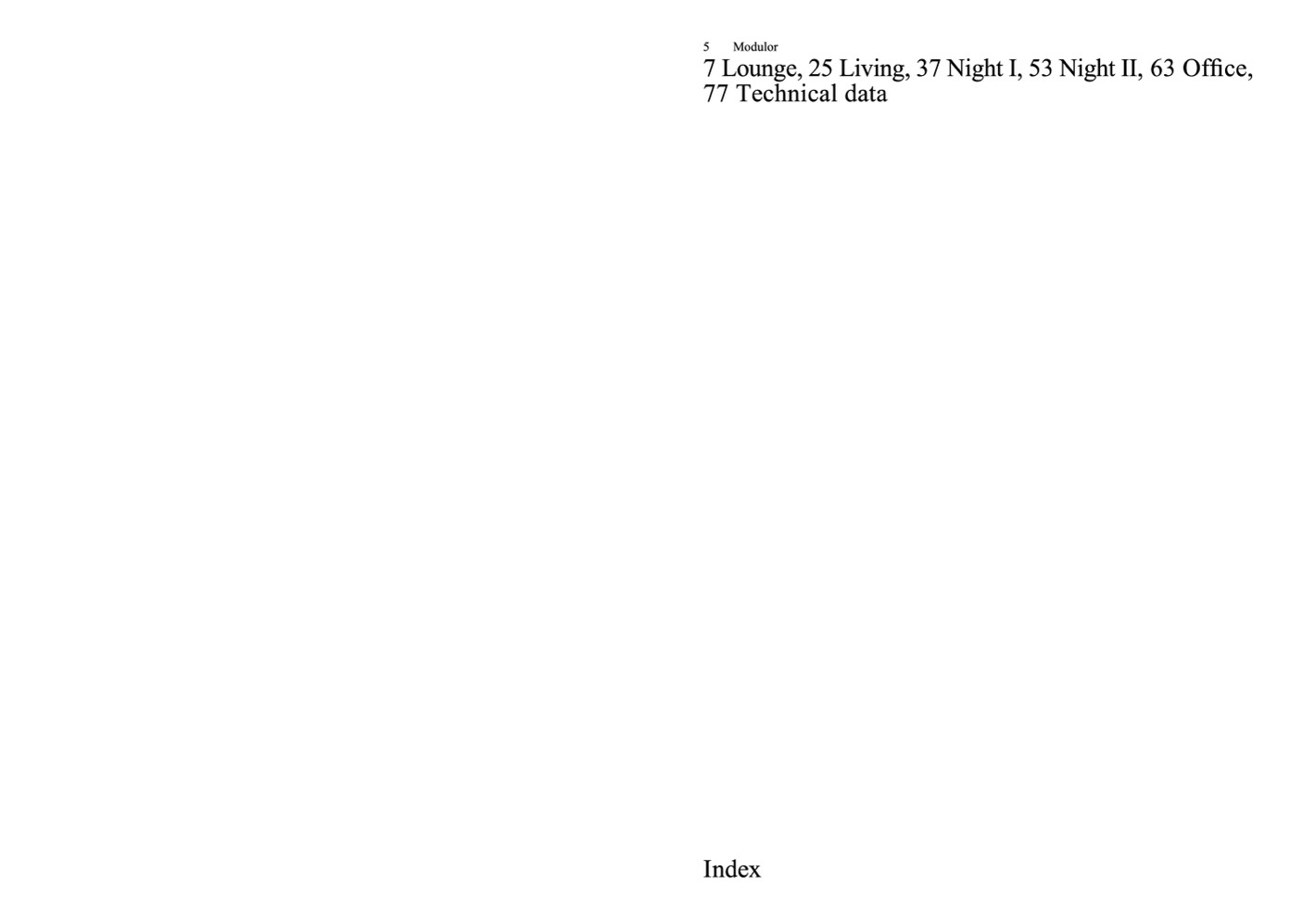 7 Lounge, 25 Living, 37 Night I, 53 Night II, 63 Office,