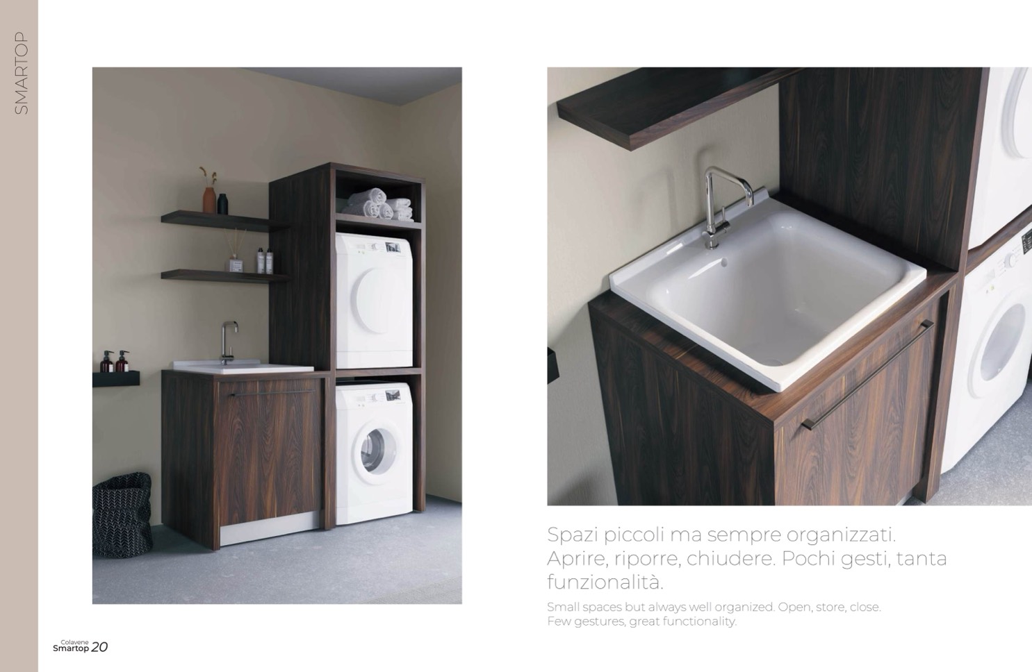 Small spaces but always well organized. Open, store, close.