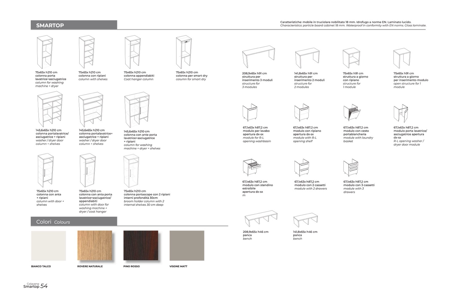 Characteristics: particle board cabinet 18 mm. Waterproof in conformity with EN norms. Gloss laminate.