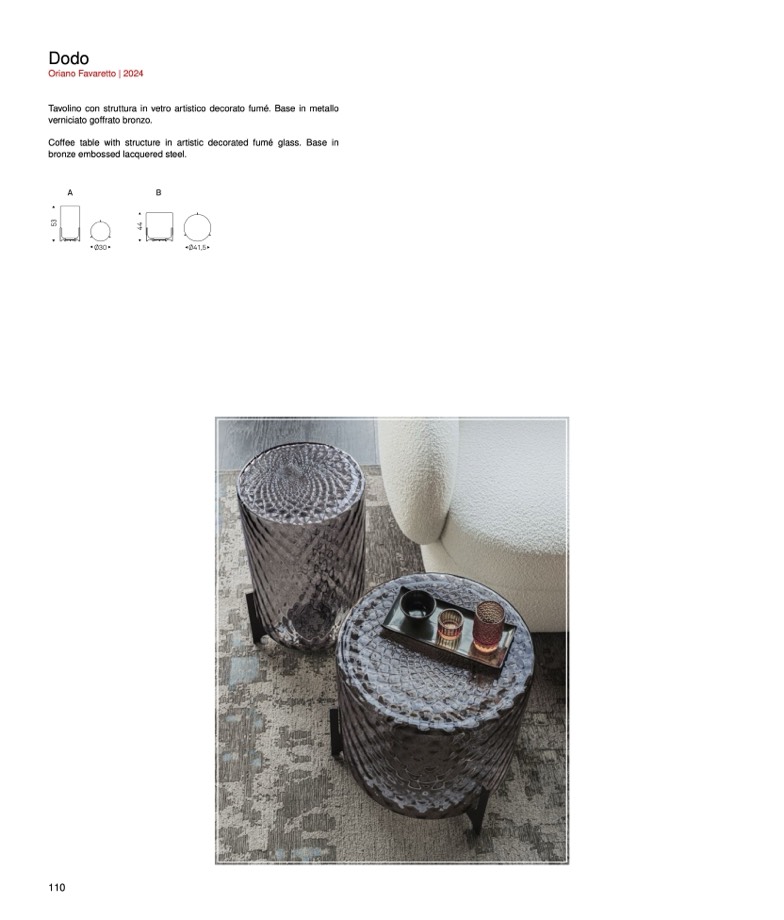 Tavolino con struttura in vetro artistico decorato fum