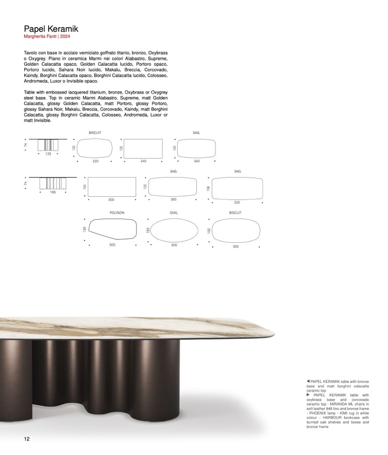 steel base. Top in ceramic Marmi Alabastro, Supreme, matt Golden